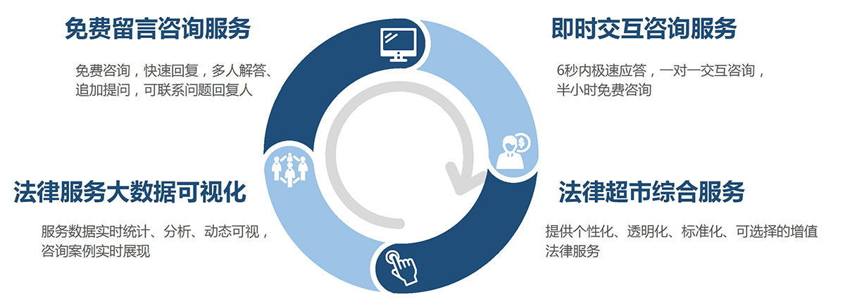 该部分服务产品为用户提供律师即时在线为用户提供交互咨询服务,“在线服务系统按照“本地律师首选+全国律师支撑”的模式对后台律师资源进行调配,通过专门的律师分配机制,确保6秒内有人接单响应。